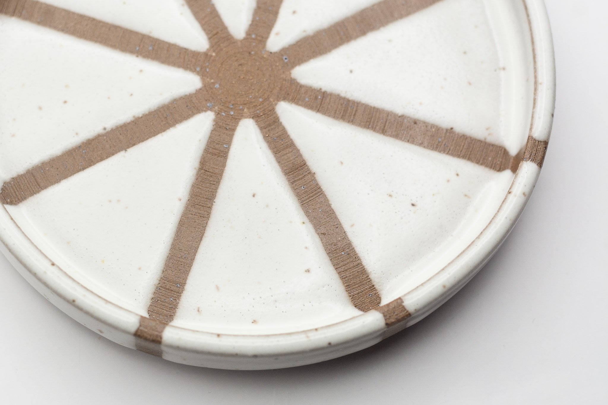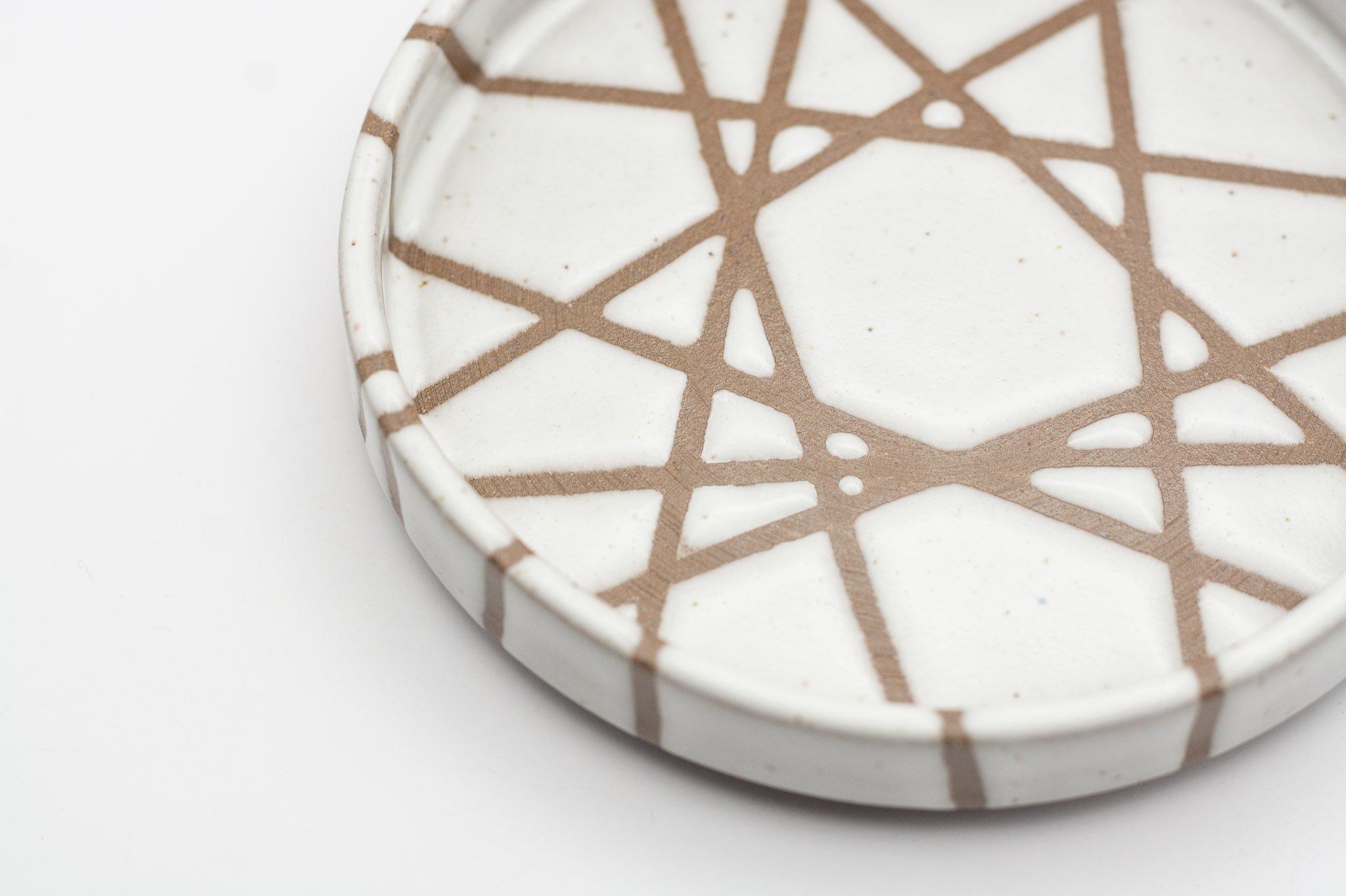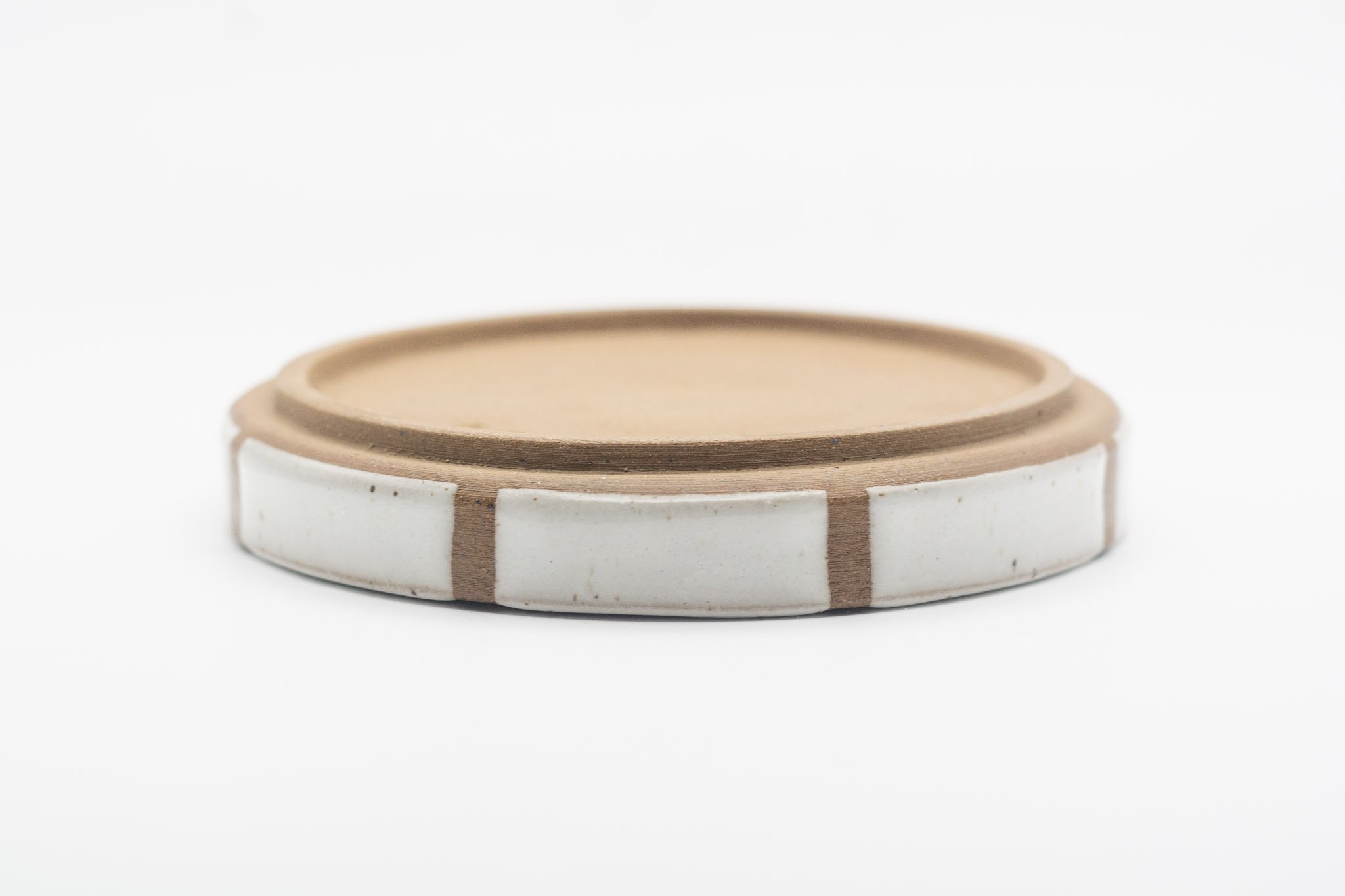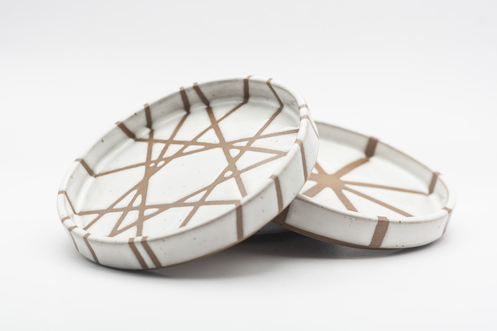 This series of small side plates featuring 3 different glaze patterns, which expose sections of the raw, chocolate brown coloured clay. The vertical walls make this a versatile vessel for your favourite snack, trinkets or loose household items, such as your keys. Each plate has a foot ring, giving them a levitating effect.