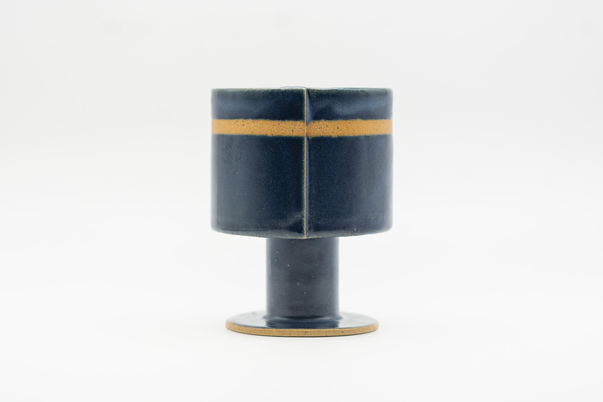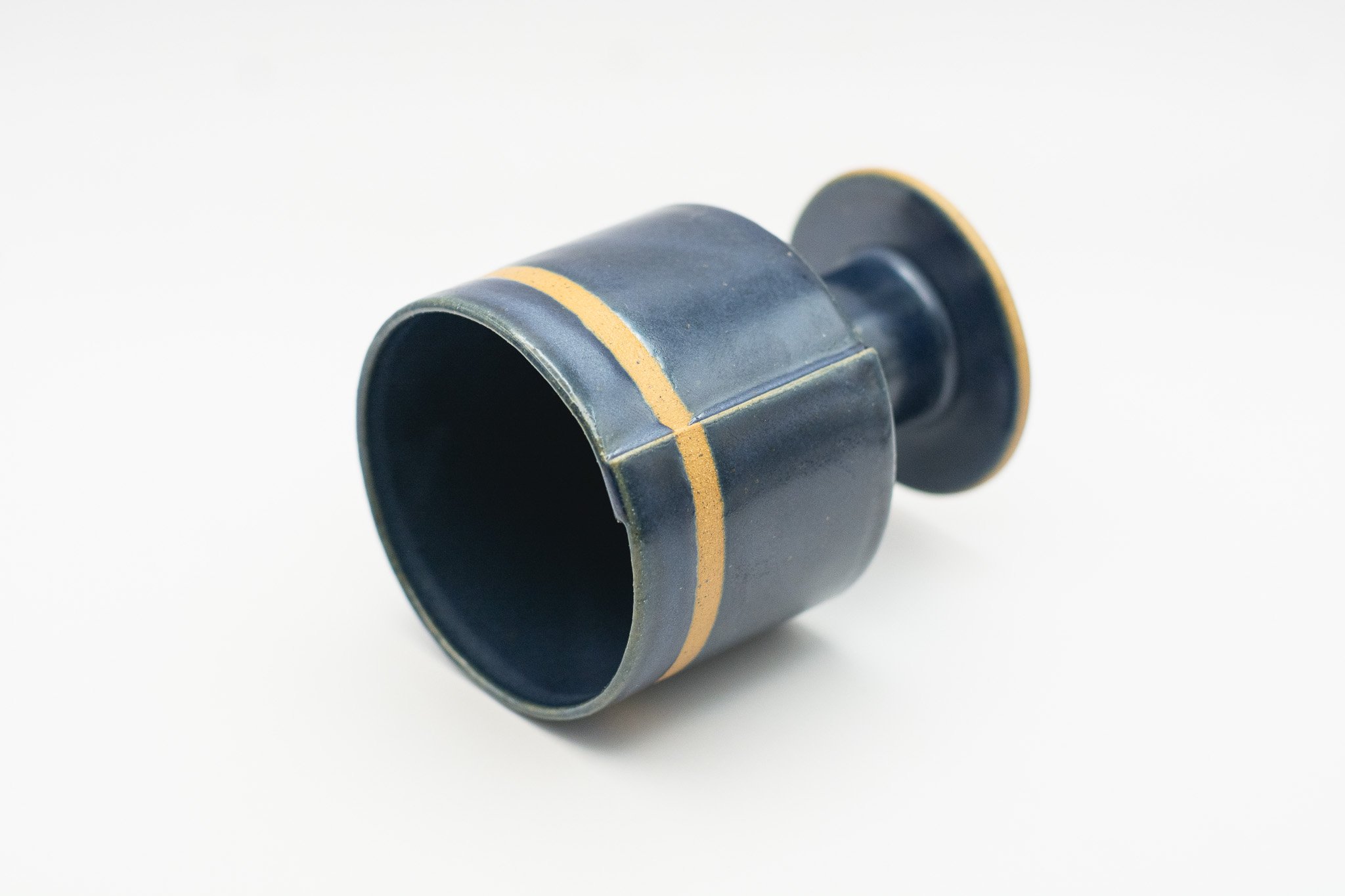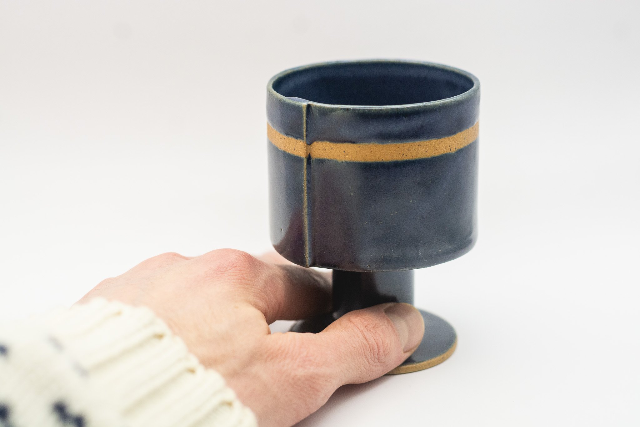 These medium sized goblets are characterized by their squat and delicate form, navy glaze and stripe of unglazed clay. Use these for anything from water and wine to coffee and dessert!