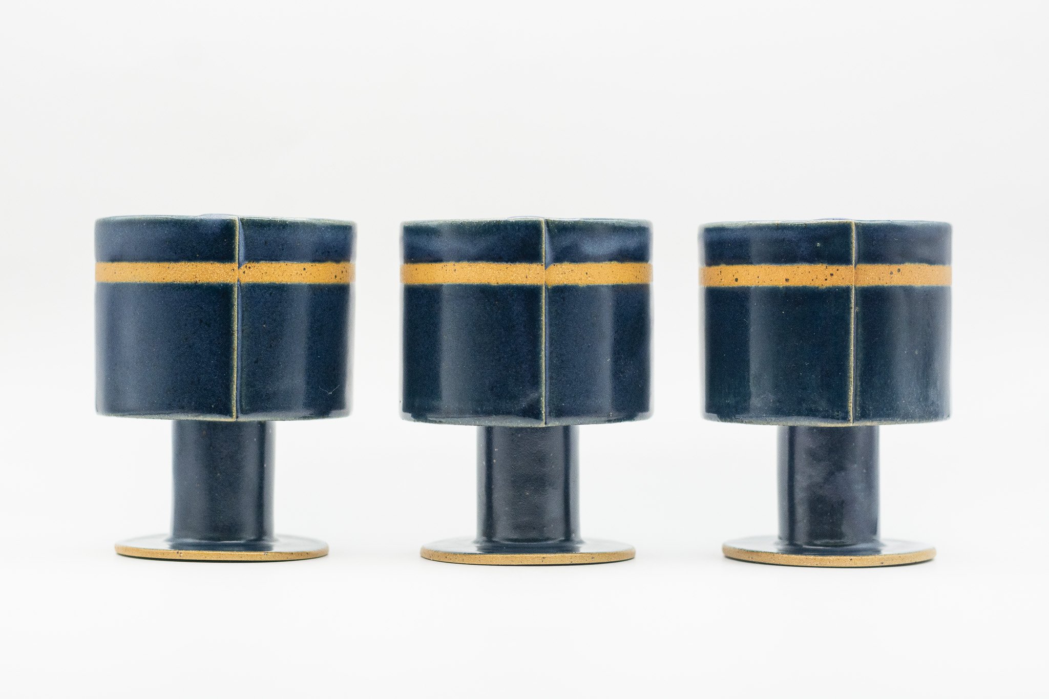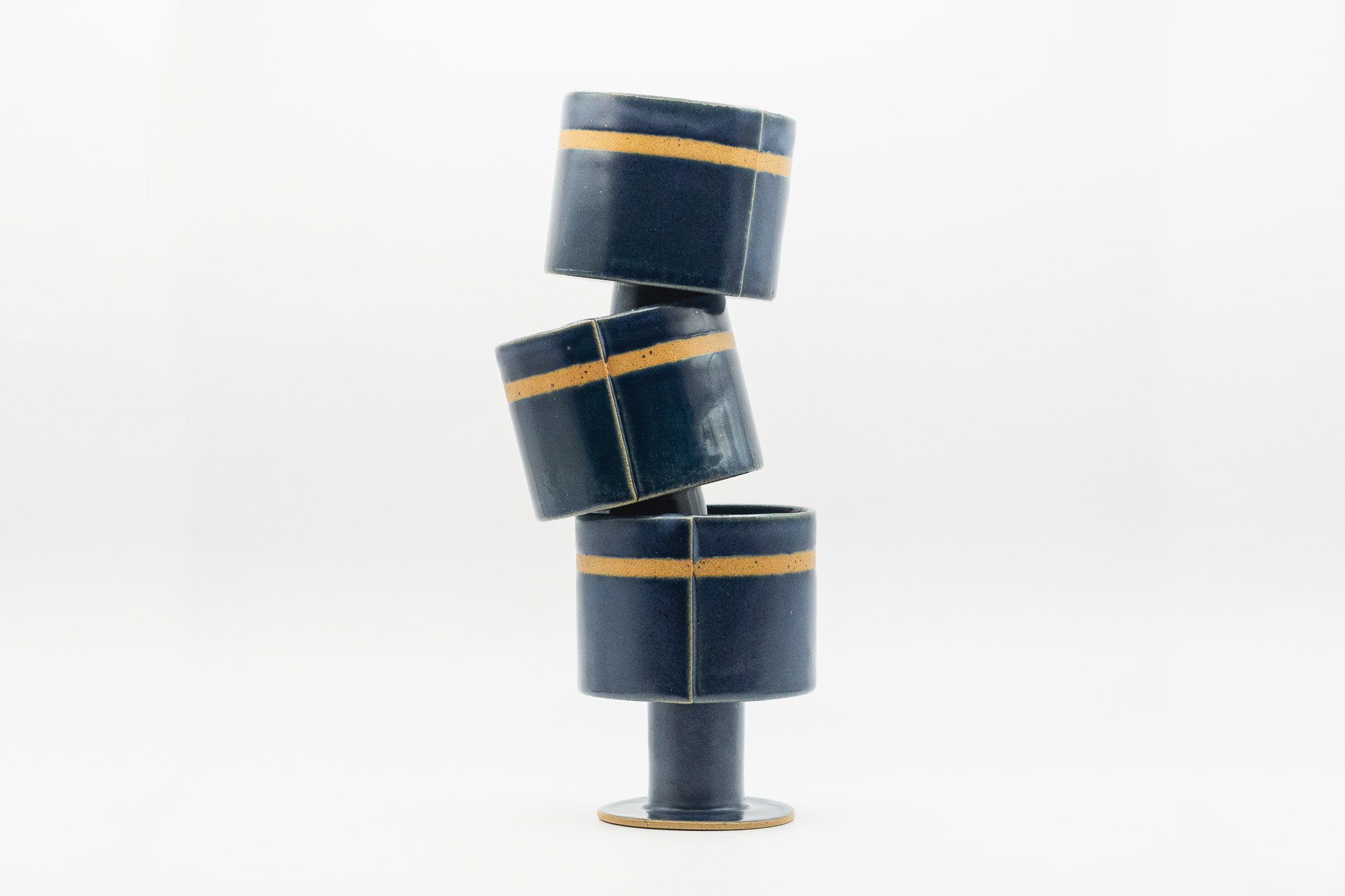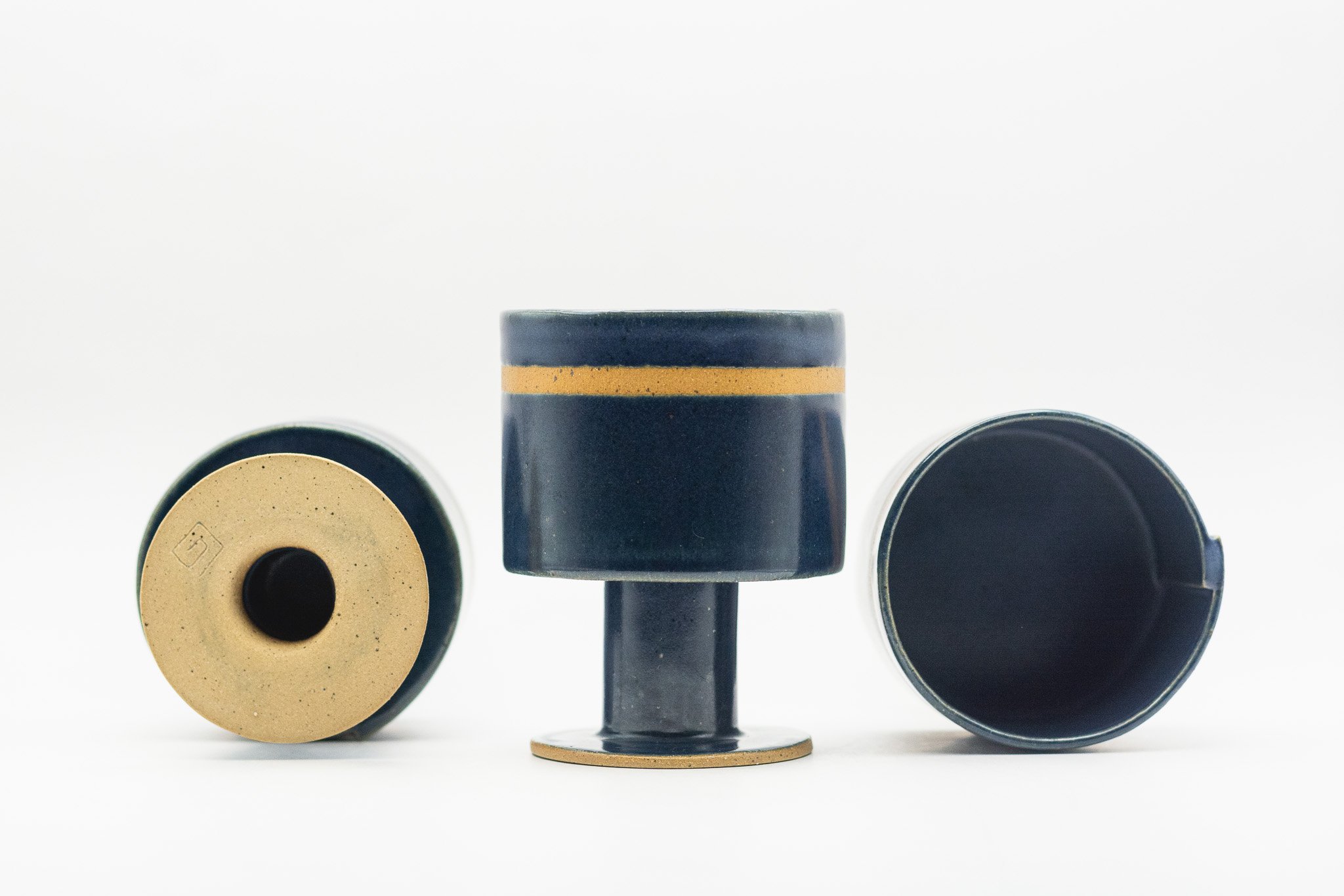 These medium sized goblets are characterized by their squat and delicate form, navy glaze and stripe of unglazed clay. Use these for anything from water and wine to coffee and dessert!